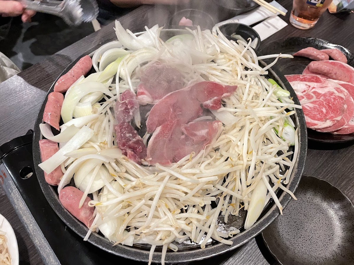 The menu keeps things refreshingly straightforward, yet every dish leaves a strong impression. One of the standout plates is ラムチョップ, thick and juicy lamb chops grilled right at the table. They arrive with a deep, savory flavor that shows why jingisukan-style cooking is so loved in Hokkaido. Another favorite is 熟成塩ジンギスカン, where aged lamb is lightly seasoned with salt to let the natural taste shine. The meat cooks quickly, stays tender, and pairs perfectly with the casual, hands-on grilling style.